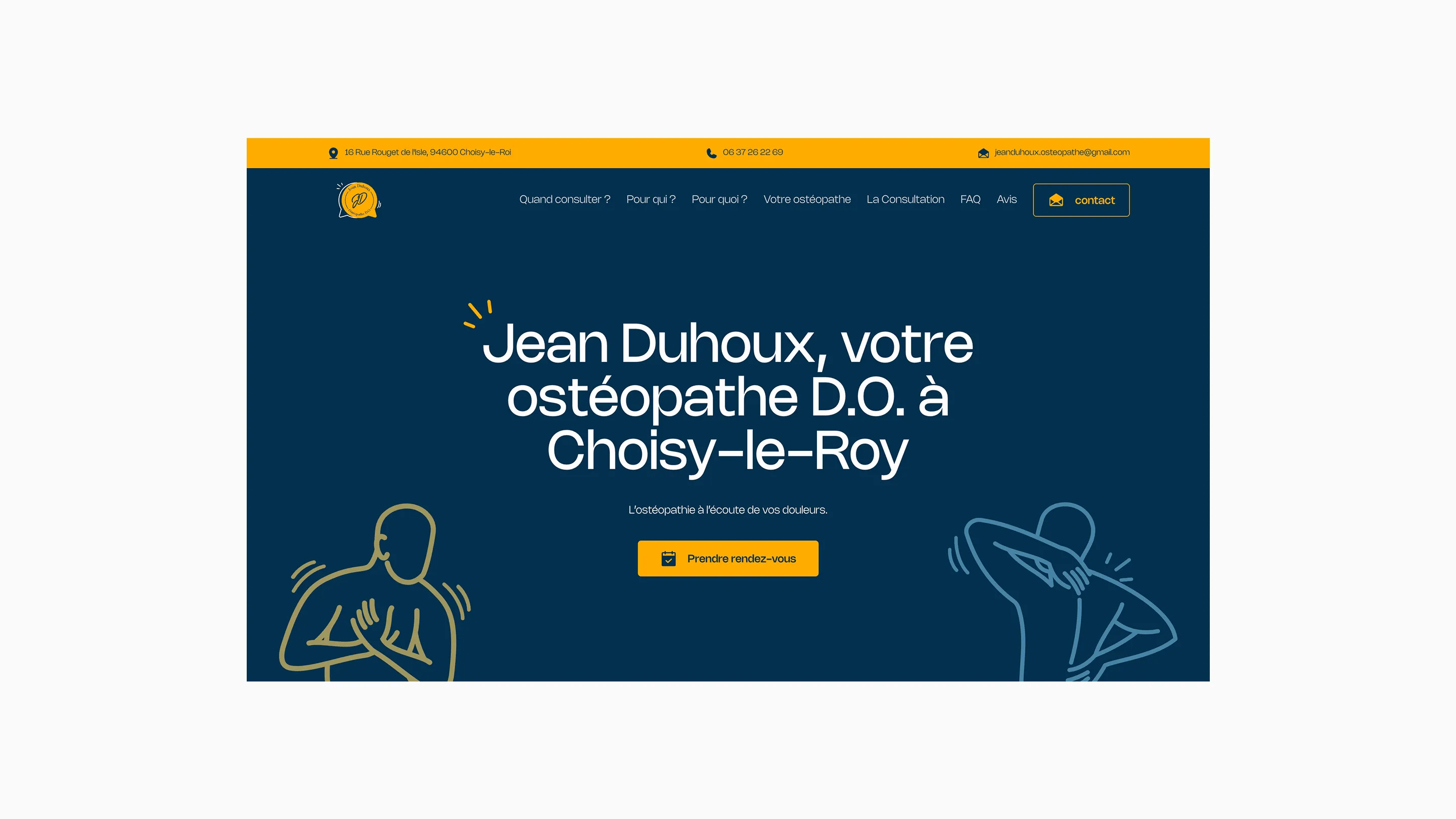 Jean Duhoux is an osteopath based in Choisy-le-Roy, providing personalized care focused on understanding patients’ pain through a combination of manual techniques and clinical assessment.